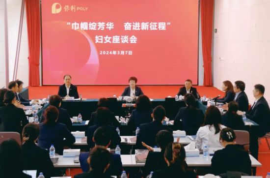 3月7日,保利集团召开全系统妇女座谈会,集团公司党委副书记、总经理张万顺,党委常委、总会计师陈关中向妇女代表赠送鲜花,保利集团党委常委、纪委书记孙丽霞与大家亲切交谈。