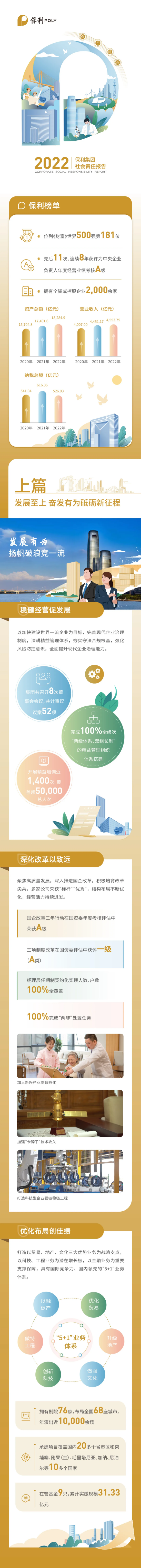 近日,保利集团发布2022社会责任报告,并获中国企业社会责任报告评级专家委员会五星评级。报告解读改革发展、科技创新、生态治理、保障民生等领域的履责效能,向社会各界展现出保利以担当致美好的坚实步伐。