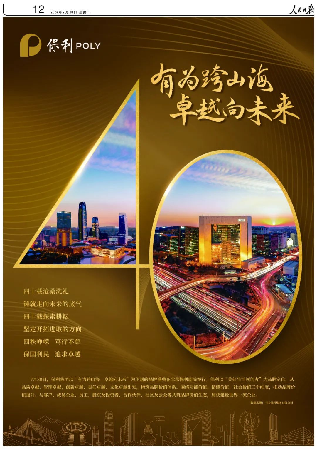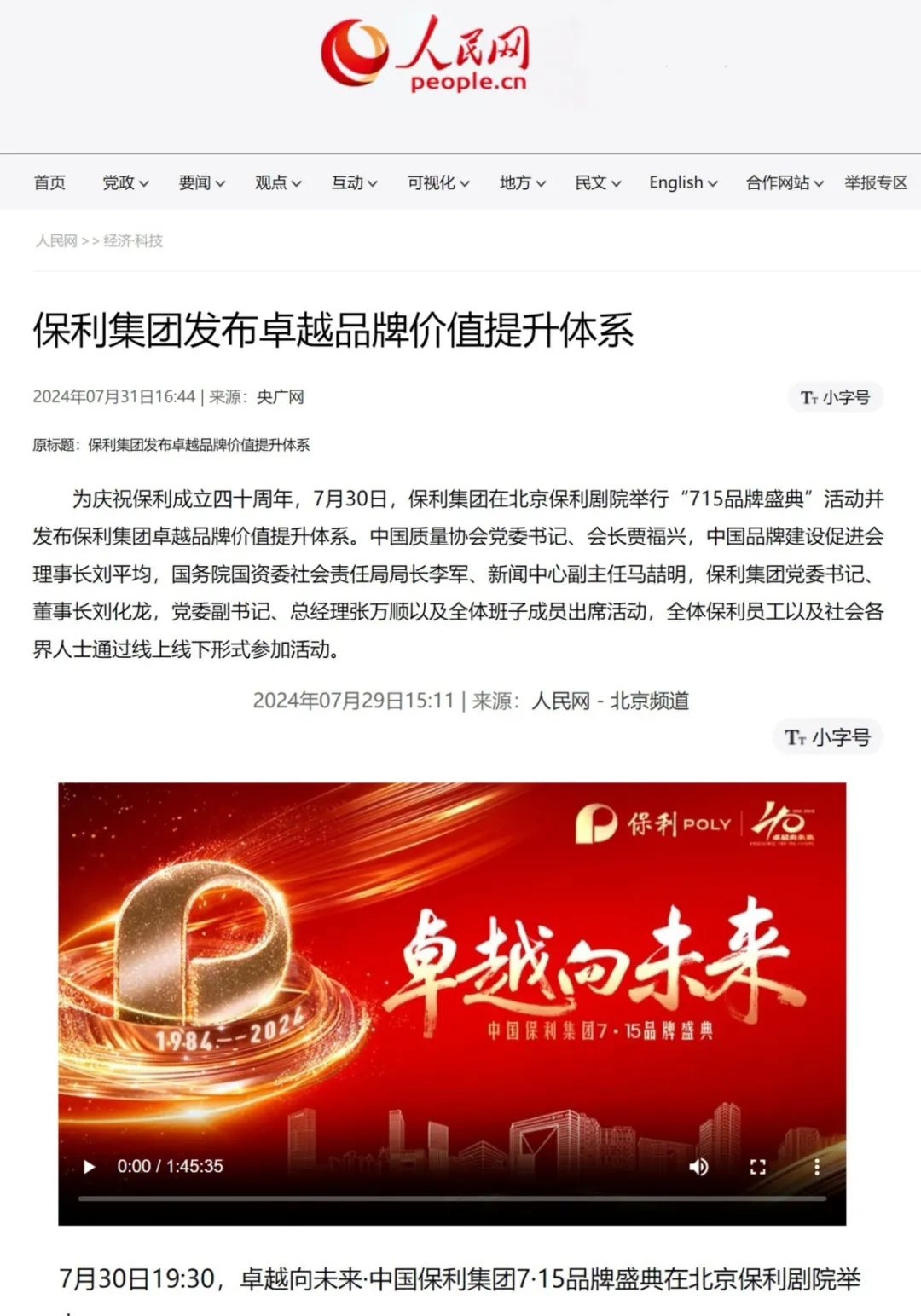 告白流金岁月,共赴美好未来。保利成立四十年之际,保利集团集中开展一系列主题活动,“7·15品牌盛典”以时代交响传唱保利峥嵘乐章,“卓越四十年”主题宣传镌刻卓越保利的时代坐标,各子公司特色策划汇聚万千保利人的奋斗群像……全系统以各种形式为保利庆生,以美好接力,获得社会各界广泛关注。人民日报、光明日报、经济日报等权威主流媒体聚焦报道,全网曝光量超过4600万,诠释出新征程上保利笃定目标、不懈攀升的新篇章。