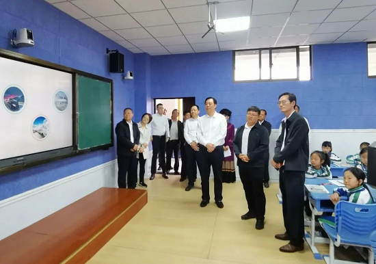 调研组赴宁蒗县贝尔学校考察了体操舞蹈中心、贝尔中学健身中心、智慧云录播教室、校园综合能力提升改善工程等援建项目使用情况,现场观摩了学生与“暖风课堂”青年志愿者云端互联的智慧教学活动,并在小凉山学校中控中心了解智慧校园、平安校园等教育云网络的运行情况。