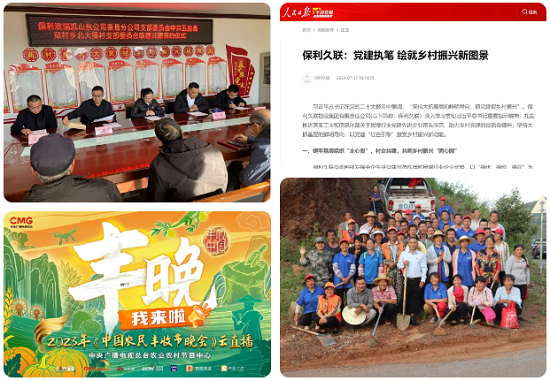 积极发挥党建引领优势,保利以党建“红色引擎”激发乡村振兴新动能,为帮扶县产业、教育、文化等领域发展提供有力支撑。构建组织联结、队伍联建、活动联办、资源联享、产业联动“五联”工作机制,在五台县打造茹村乡北大贤村、台城镇走马岭村等党建示范点项目和鲁甸县江底社区“核桃树下党支部”特色标杆;积极探索“村企”人才共建模式,实现驻村第一书记和村困难党员“1+N”结对,企业党支部党员和村党支部党员“N+N”结对,并积极开展村党组织带头人后备力量培育储备三年行动,着力造就一支懂农业、爱农村、爱农民的“三农”工作队伍。相关成果获主流媒体广泛报道,保利驻云南省鲁甸县江底社区第一书记作为全国典型代表登上央视《中国农民丰收节晚会》,人民日报全国党媒信息公共平台发布《保利久联:党建执笔 绘就乡村振兴新图景》一文。
