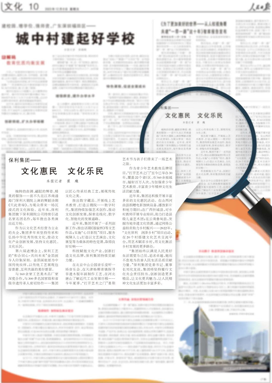 12月8日,《人民日报》刊发《文化惠民 文化乐民》一文,报道保利集团始终以传承和发展传统文化为己任,致力于讲好中国工艺美术故事、提供优质公共文化服务的系列举措成效。与大家共享——