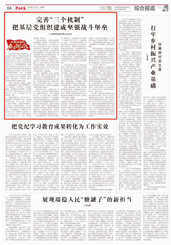 《学习时报》刊发集团党委署名文章:完善“三个机制”...