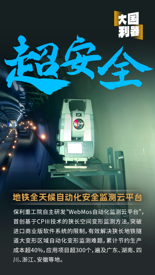 漆黑的地铁隧道内不时闪烁着点点红光,这是测量机器人正在将监测数据实时回传至WebMos自动化监测云平台。千里之外,技术人员只需远程监控,便可全程掌控地铁隧道结构的安全情况,做到突发情况提前预防、安全隐患提前预警,保障城市轨道交通既有结构安全及运营安全。这一平台,就是保利发展下属重工院打造的“安全之眼”。