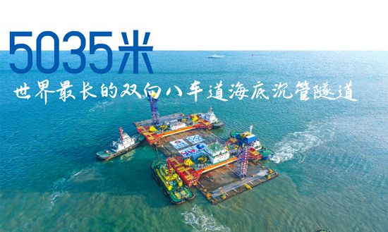 深中通道海底沉管隧道全长约5035米,由32节“航母般”大小的沉管连接而成,保利长大负责隧道东侧9个管节的浇筑预制及浮运沉放安装等工作,完成占比约三分之一的工程量。